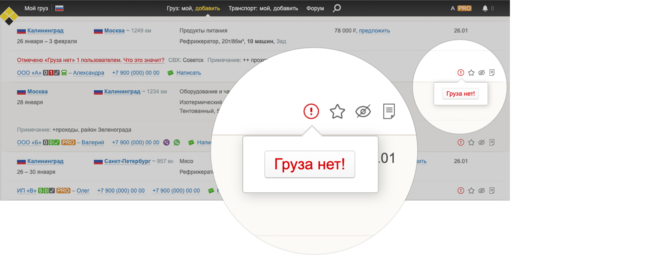 Нажимайте на кнопку, когда действительно уверены, что груза или транспорта нет. Если ваши жалобы окажутся необоснованными, мы скроем эту функцию для вас.